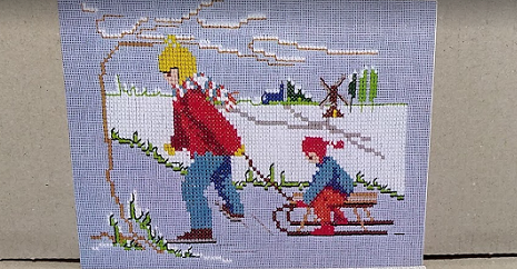 雪そりの子供たち 1点 背景も素敵です。