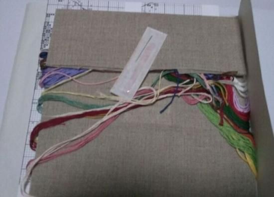 図案(オリジナル)、針、布、糸、仕分け表(仕分け済み)のセットです。